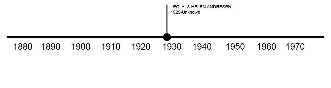 At the time the home was built in 1929, Leonard was 27 years old and married to a Ms. Margaret Helen Henning. Leonard's brothers also resided in the home, though, only for a short time. It is unknown how long the Andresen family owned this home, however, Leonard passed away at 65 years old, with Helen passing the following year.