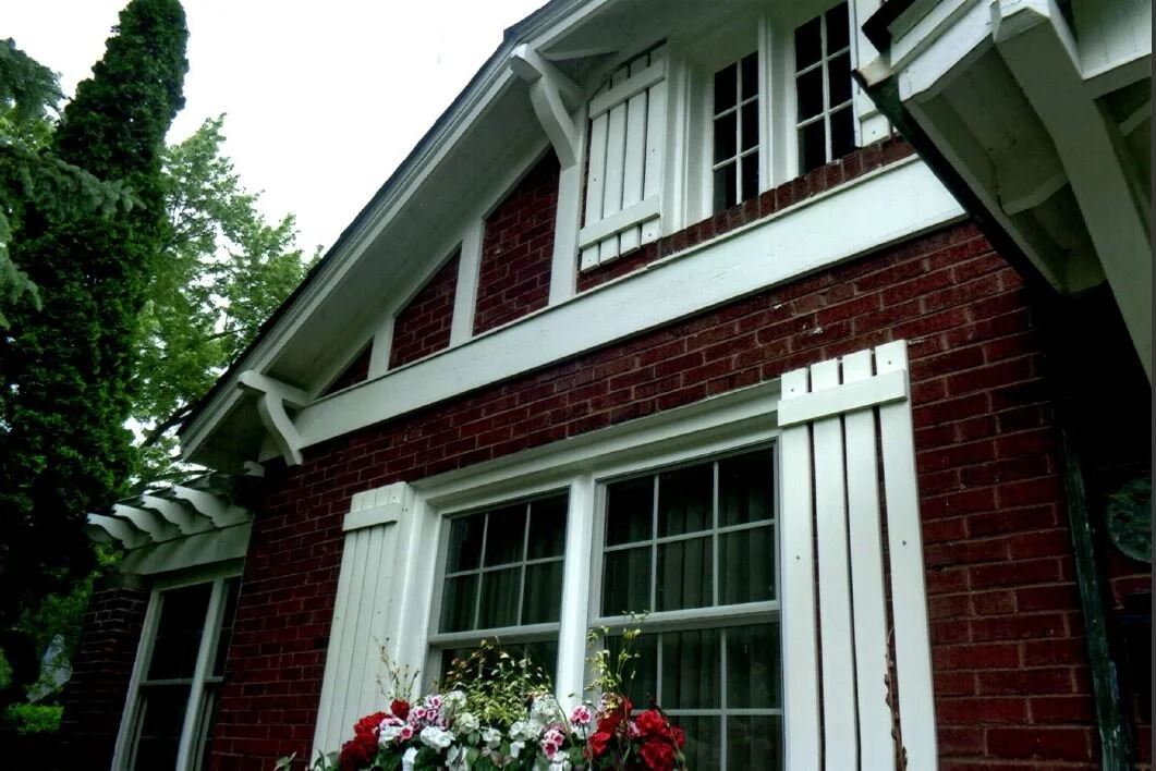 345 Vincent Place is an excellent example of an Arts and Crafts style bungalow which enjoyed popularity from around 1915 through 1929. This one-story house has a dominant front-facing jerkinhead gable, grouped windows, wide eaves with brackets and uniquely, it has false half-timbering that is reminiscent of the Tudor Revival Style.