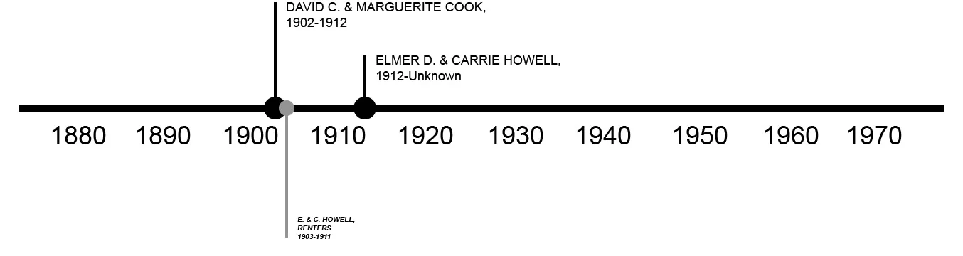 The house on lot 12 became 845 River (Grove) Street and was built initially as income housing. Elmer D. Howell, an agent for the east side Chicago and Northwestern Railway was listed in the 1903 city directory at that address, probably as a renter. In 1911, Mr. Howell left the employ of the Chicago and Northwestern Railway after 17 years to become the secretary of Elgin's Commercial Club, the forerunner of the Chamber of Commerce. He was paid an annual salary of $2,000 enabling him and his wife, Carrie, to buy the house from Cook in 1912.